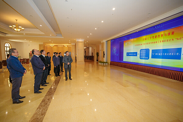 会后,李小三在杨林、张昌山以及相关职能部门负责人的陪同下,来到明远楼综合展示系统前,详细了解了云南大学基层党组织建设的基本情况。李小三对学校充分结合学科优势,创造性提出“计量党建学”这一综合性交叉学科的做法给予了肯定,并希望学校能够深入研究,争取为全省高校党建创立一个新标准。