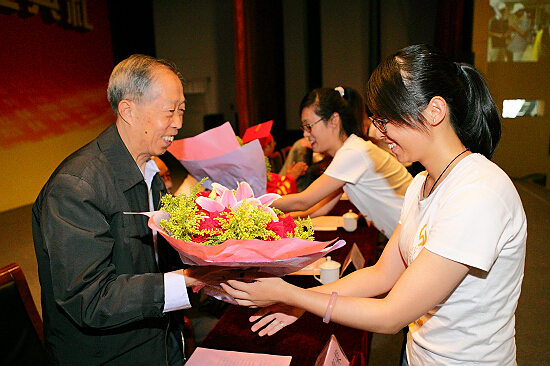 资深教授、教师、图书馆管理员、辅导员、宿管员、医生、校卫队员、后勤职工以及学生家长等代表都来到了毕业典礼现场,他们为毕业生送上美好祝福。毕业生代表为他们献上鲜花,表达诚挚谢意。温馨与感动,眷恋与不舍充盈在彼此心间。