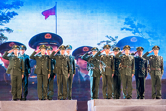 晚会尾声《百年云大》节目中,全体演员登台谢幕,与全场观众共同期待并迎接百年校庆的到来。