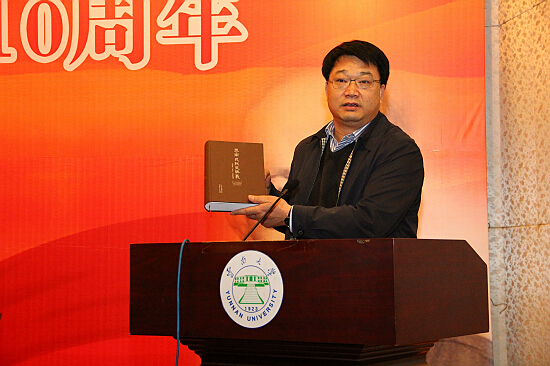 校党委书记刘绍怀在会上致辞。他简要介绍了方国瑜先生的学术成就,回顾了方先生为我校建设发展做出的重要贡献。刘绍怀说,我校创建初期,方先生筚路蓝缕育英才,努力推动学校历史学和民族学发展,培养了大批优秀人才:在学术方面,方先生潜心研究著经典,以权威的学术论著开创了我校中国民族史、西南边疆史、云南地方史的研究。他提出中国历史发展的整体性理论,是我校建校90年来具有极高学术价值的原创理论,对维护祖国统一,促进民族团结,推动边疆发展有重大社会意义;在工作和生活中,方先生还体现出崇高的爱国情怀,良好的道德风尚和优秀的学术品质,可谓道德文章传千古。刘绍怀希望全校师生以方国瑜先生为榜样,在科学研究中勇于探索,开拓创新,提高道德修养,纯洁学术操守,进一步推动我校学科建设和人才培养工作,为把学校建成区域性高水平研究型综合大学而努力奋斗。