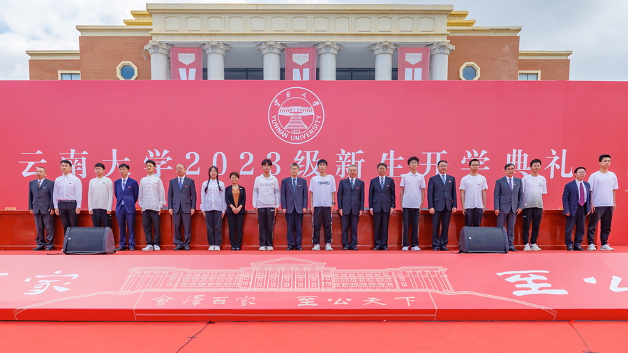 2023年9月23日,云南大学2023级新生开学典礼在呈贡校区文典广场举行。校党政领导周学斌、方精云、陈华仙、吴建德、朱宏、王昆华、胡金明、陈克清、廖炼忠、舒绍福,2023级全体新生,学校各职能部门、培养单位负责人,以及教师代表、新生辅导员和班主任参加开学典礼。