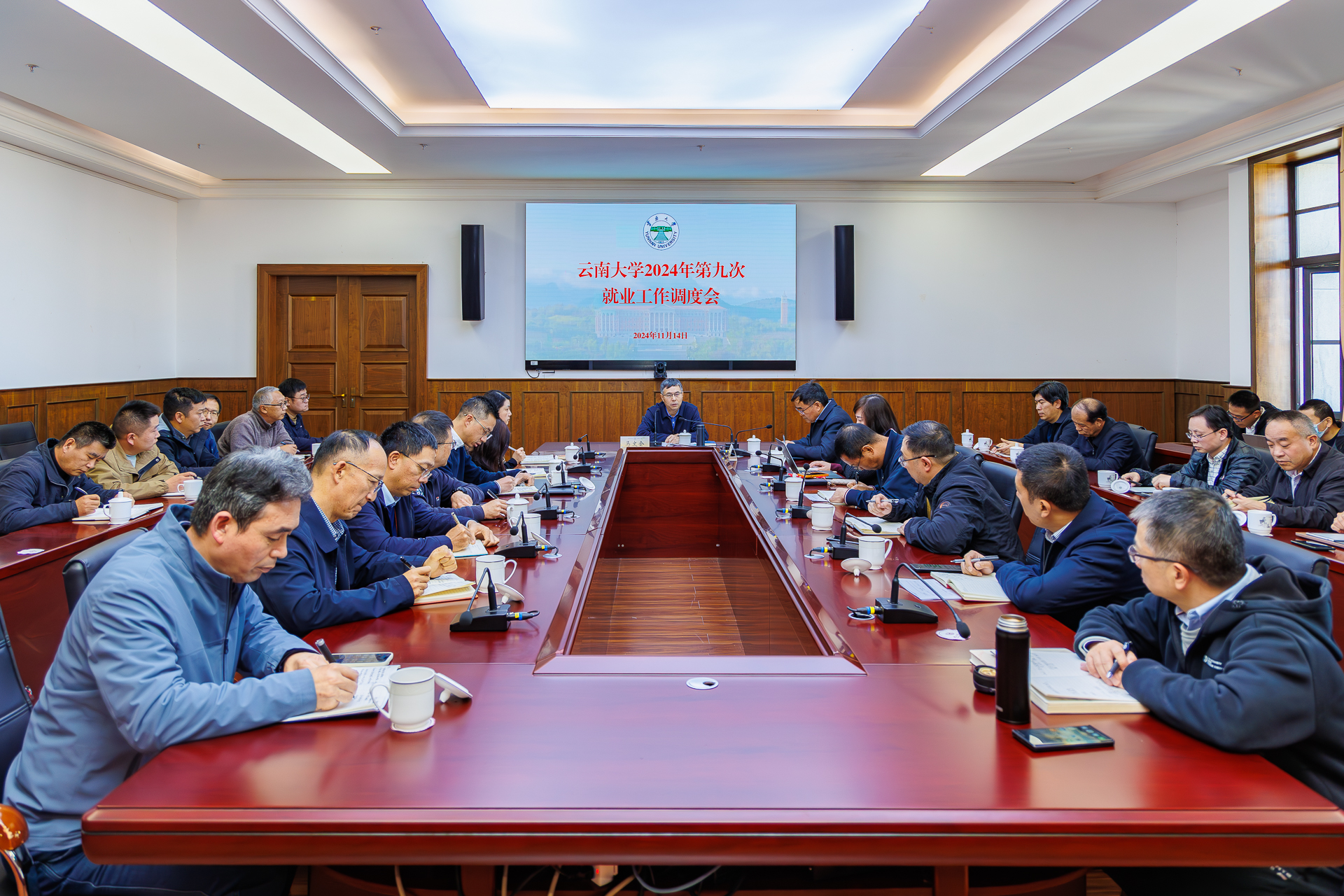 2024年11月14日,教育部召开全国高校毕业生就业创业视频会议,云南大学设分会场。校长马文会、副校长陈克清、学校就业创业工作领导小组成员单位负责人、各学院主要领导和分管领导在分会场参会。