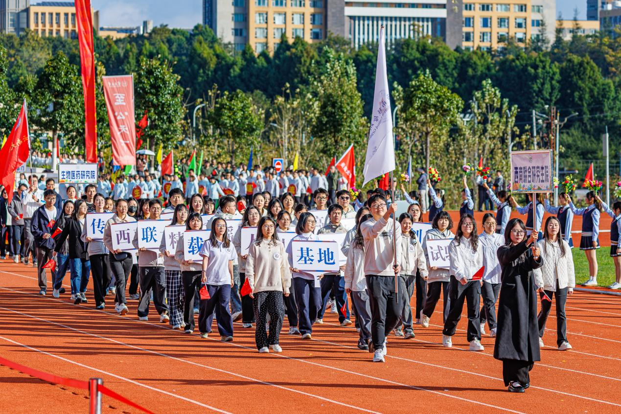 开幕式上,国旗方阵、校旗方阵、会徽方阵、鲜花队方阵、红旗队方阵、各学院、各部门代表队方阵依次进场。方阵中各具特色的字牌和道具,充分展示了各学院、各部门的独特风采与鲜明特色,更展现了云南大学师生们饱满的精气神和顽强拼搏的体育精神。每一个方阵的亮相,都赢得了热烈的掌声和喝彩声。