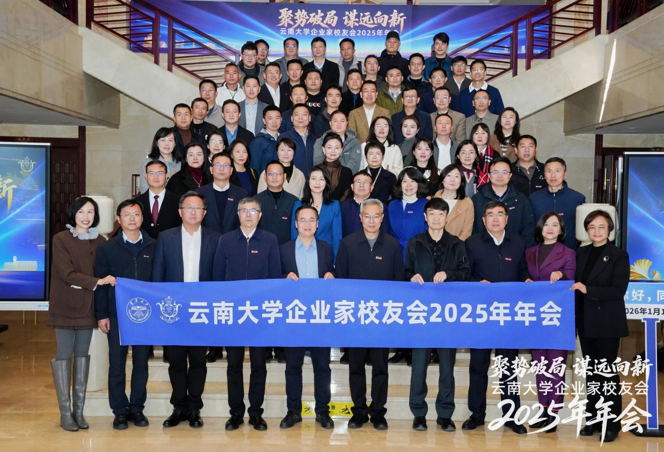 2026年1月16日,“聚势破局·谋远向新”2025年云南大学企业家校友会年会在昆明举办。校党委书记周学斌,校长马文会,副校长陈克清,招商银行昆明分行党委书记、行长冀华,副行长舒静宜,北京云南企业商会执行会长李大剑,云南省滇商总会副会长、爱尔信集团董事长毛良,云南大学企业家校友、各兄弟商会代表,以及学校相关职能部门负责人参加会议,企业家校友会秘书长夏晶主持会议。