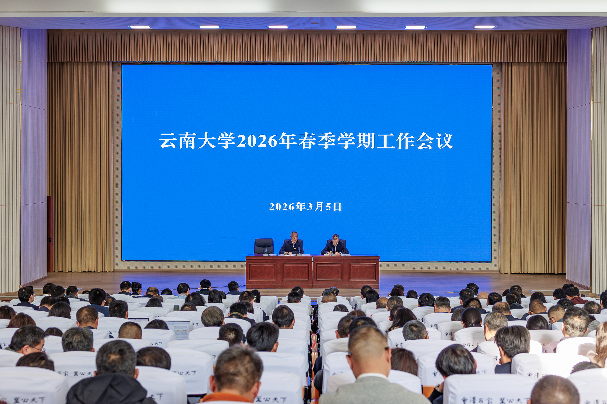 2026年3月5日下午,云南大学召开2026年春季学期工作会议,回顾学校“十四五”发展成就,重点总结2025年主要工作成效,安排部署2026年重点工作任务,夯实基础,全面发力,确保“十五五”开好局、起好步。校领导周学斌、马文会、张玮、王爱平、陈克清、吴涧、段兴武、唐年胜、彭云珠,以及学校中层机构负责人参加会议。