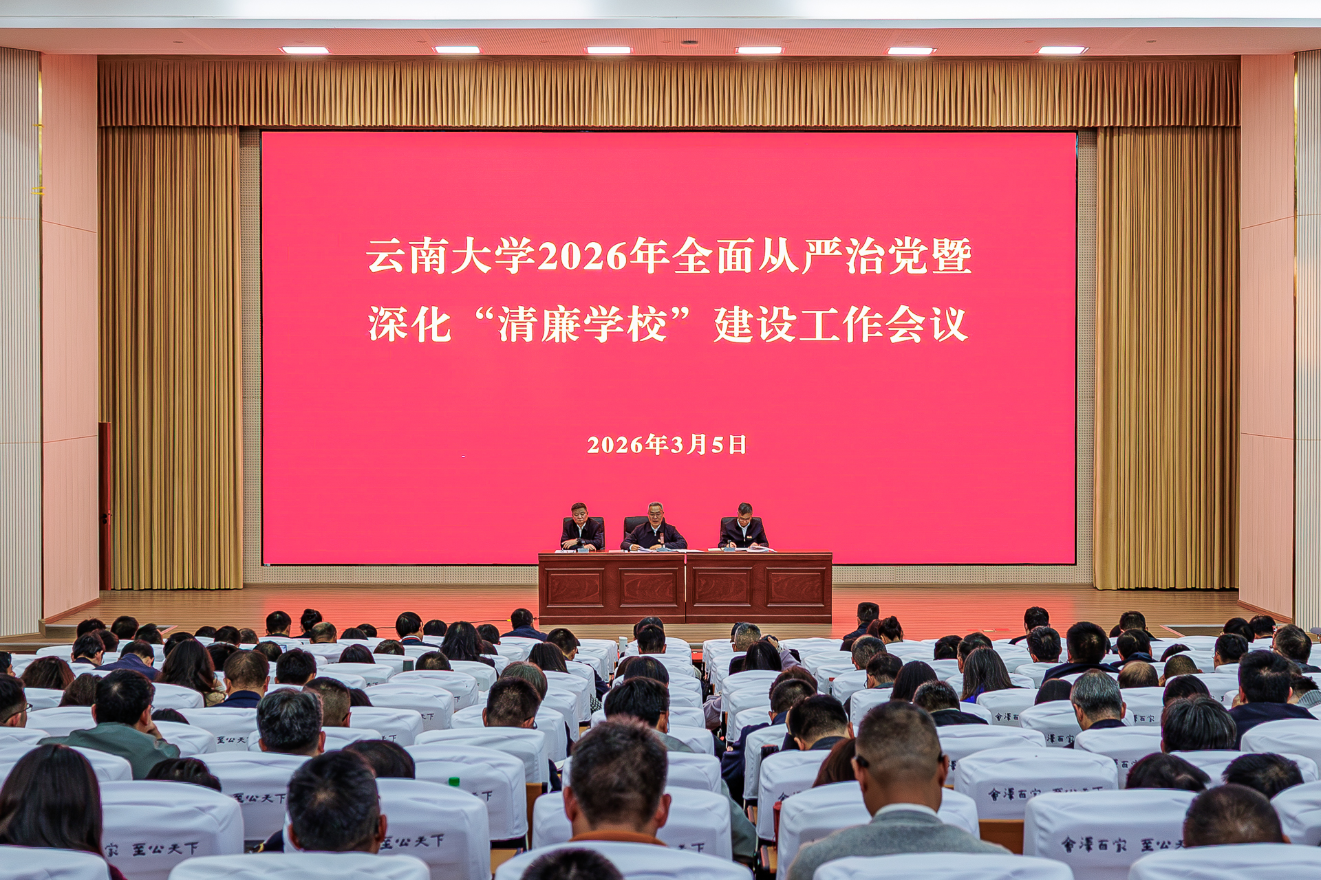 2026年3月5日,云南大学召开2026年全面从严治党暨深化“清廉学校”建设工作会议,深入学习贯彻习近平总书记在中央纪委五次全会上的重要讲话精神,全面落实中央纪委五次全会和省纪委十一届六次全会部署安排,总结过去一年学校全面从严治党工作,部署2026年重点任务,以更高标准、更实举措推进全面从严治党,为学校“十五五”高质量开局起步和“双一流”建设提供保障。
