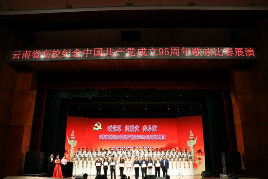 为贯彻落实《中共云南省委办公厅关于举办云南省纪念中国共产党成立95周年歌咏比赛活动的通知》要求,云南省委高校工委、省教育厅在全省高校组织开展了纪念中国共产党成立95周年歌咏比赛,本次活动以“颂党恩、促脱贫、奔小康”为主题。在初赛评选的基础上,从全省高校选择了包括云南大学在内的12支歌咏队参加展演。