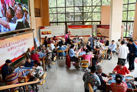 学校根据离退休同志的年龄特点,安排了两个赛场:70岁以上的老同志在一楼大厅参赛,70岁以下的离退休同志在六楼参赛。