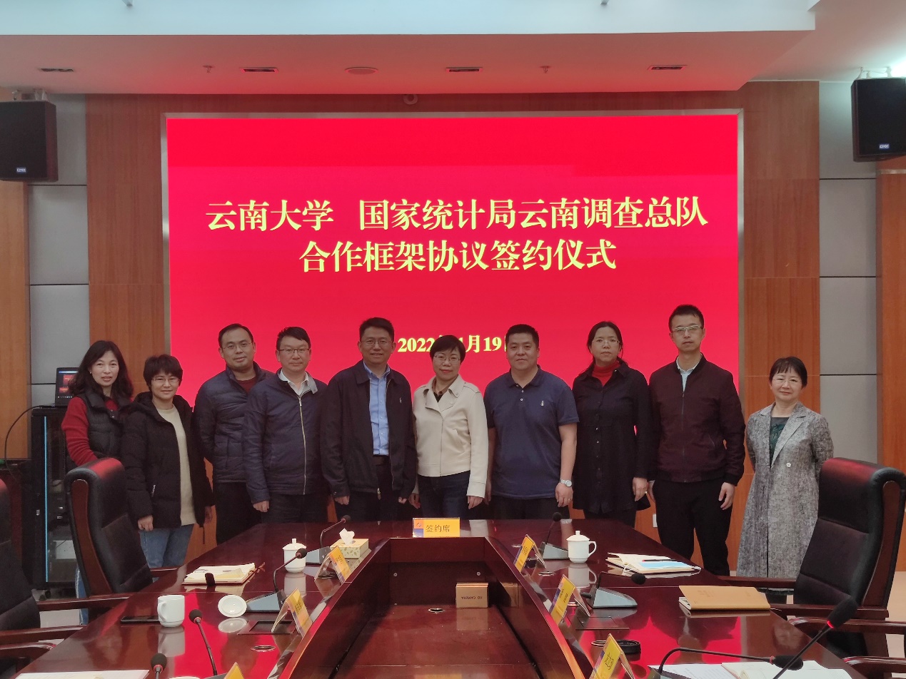 2022年4月19日,云南大学与国家统计局云南调查总队举行战略合作协议签约仪式。云南大学副校长吴建德、云南调查总队副总队长龙立珍及双方相关职能部门、云南大学数学与统计学院负责人出席签约仪式。
