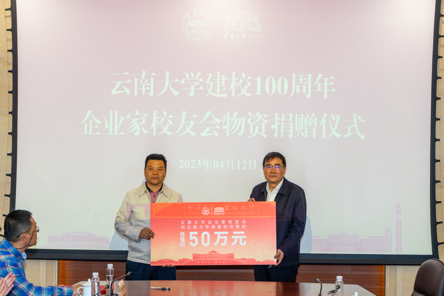 2023年4月12日,庆祝云南大学建校100周年系列捐赠仪式在呈贡校区举行。云南大学党委常委、副校长陈克清,1986级政治系校友、云南奥龙世博经贸有限公司总经理卢山,2003级计算机科学与技术专业校友、云南九机科技有限公司董事长兼首席执行官陈鸿睿,2012级工商管理专业校友、云南大学企业家校友会轮值副会长、昆明颐泰欣商贸有限公司总经理张保明,以及云南轿子雪山水业有限公司总经理李福彬出席仪式。云南大学信息学院、政府管理学院、校友总会、校庆办和有关单位代表参加仪式。