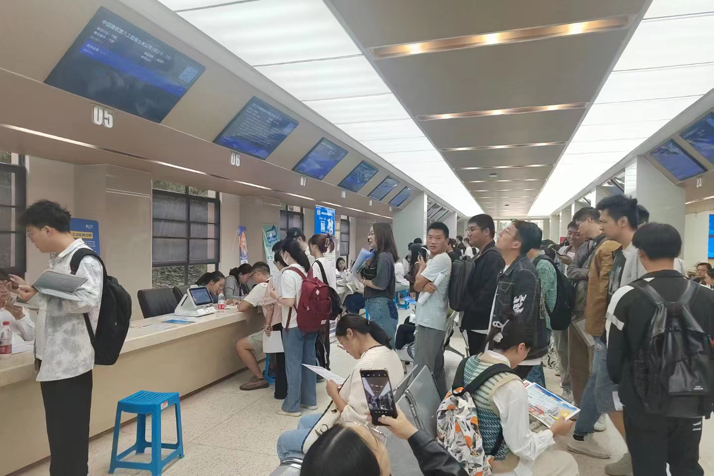 构建线下招聘大厅,优化招聘会体验。设立一座线下招聘大厅,该大厅配备了2台签到闸机、35个信息展示大屏、35台简历投递交互机和2台自助简历打印机。自2023年9月正式启用以来,已举办了53场招聘活动,为学生及用人单位提供了快捷签到、岗位信息直观展示、刷校园卡轻松投递简历以及自助简历打印等便利服务,显著提升了招聘会的整体体验。
