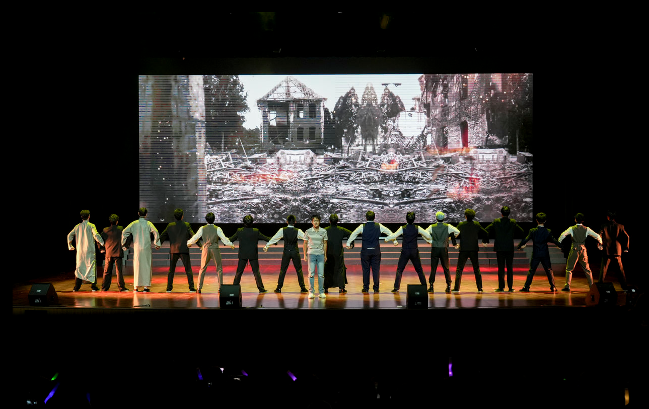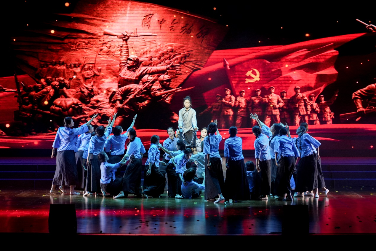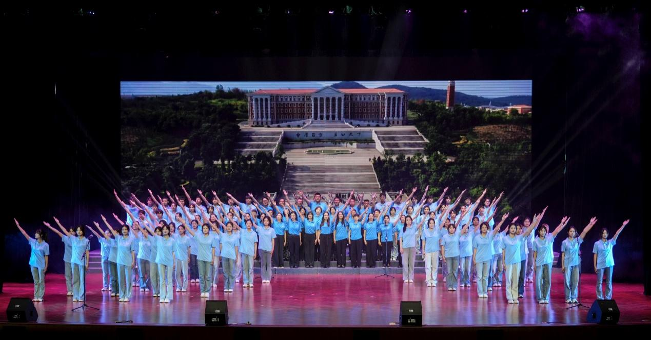 “筑梦·担使命”篇章以艺术形式展现新时代云大学子在中国式现代化建设中奋勇担当的进取事迹,引导青年学子肩负时代使命。话剧《云哩稻香·风吹稻浪》讲述了云大学子服务乡村振兴的故事,彰显了师生们将学术成果应用于祖国建设的行动自觉;创意街舞《智舞同频·科创领航》以艺术方式呈现科技强国理念,激励新生勇担实现高水平科技自立自强的时代重任;舞蹈《舞行千里·同心共融》生动诠释了中华民族共同体意识,强化“五个认同”教育;音乐剧《青衿载梦·大爱无疆》展现了云大青年投身志愿服务的担当精神,阐释了将个人发展融入国家发展的青春价值。