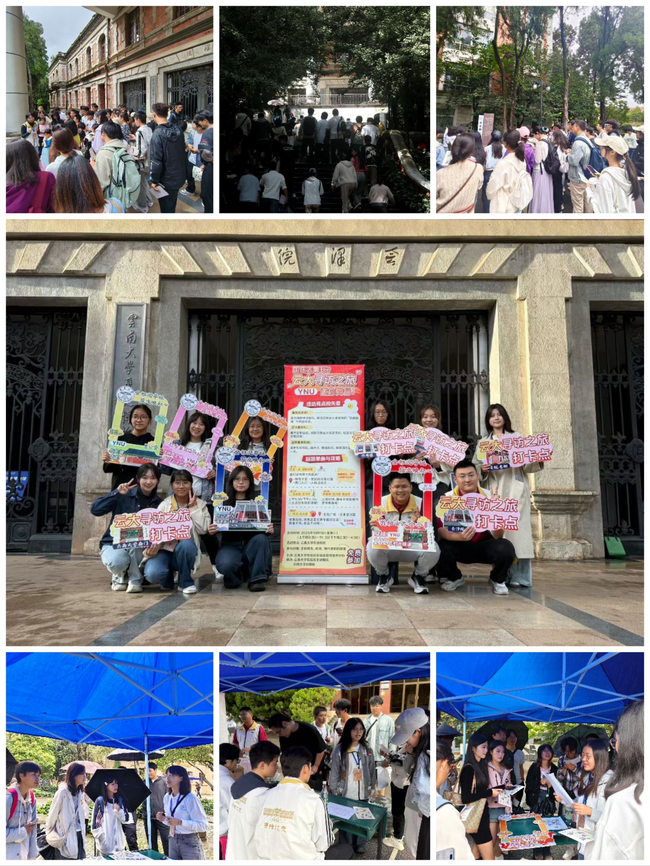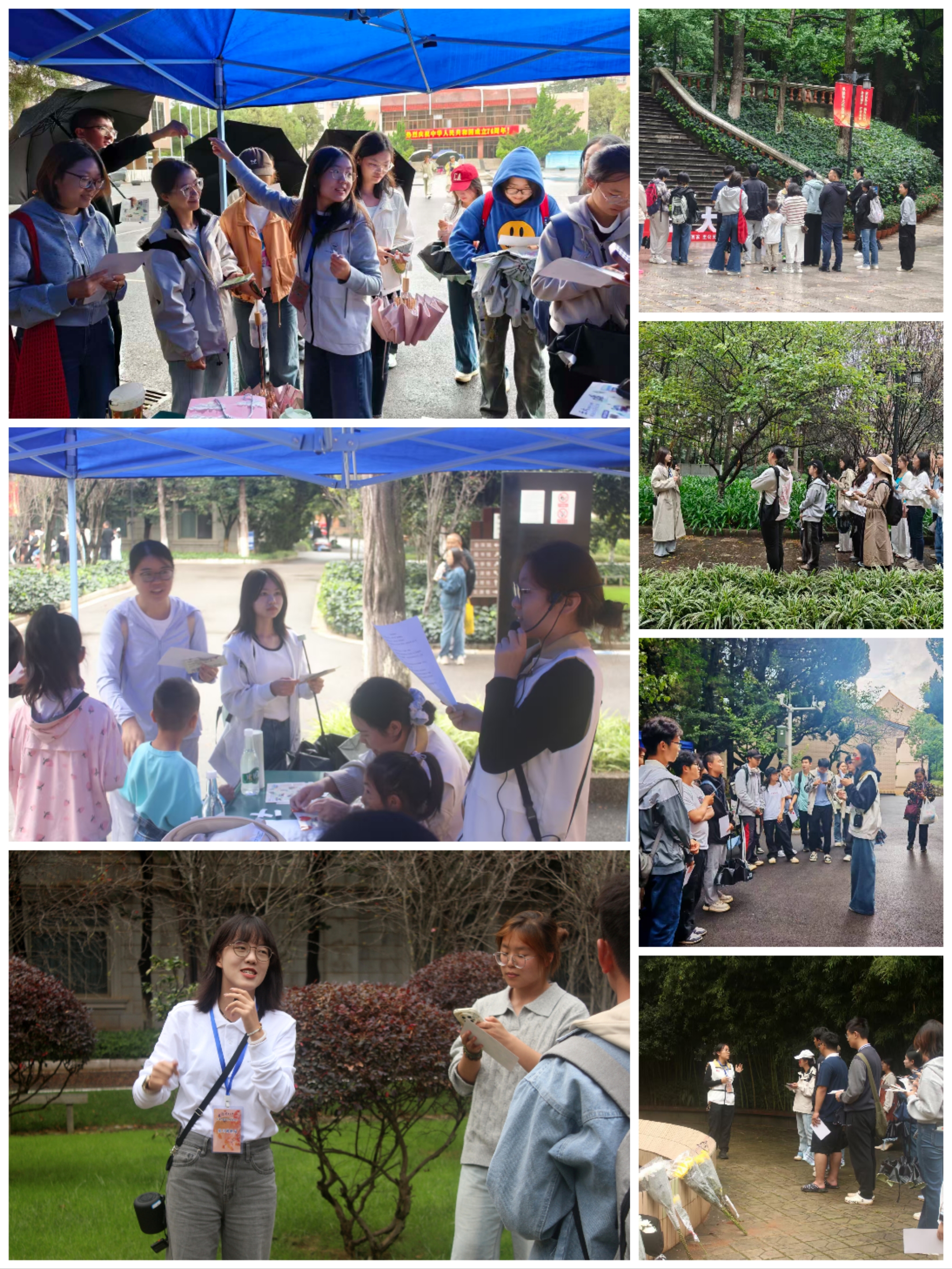秋雨淅沥之际,银杏叶呈现出一片金黄之色。在2025年国庆假期,云南大学东陆校区举办了一场别具一格的校史之旅活动。此次由东陆校区综合管理服务中心、校团委主办,东陆校史讲解队和自强社承办的“金秋迎华诞·筑迹映初心”活动,以“可听、可看、可玩”的沉浸式游园会形式开展,使原本沉默的历史建筑仿佛“开口诉说”,引领近千名师生、校友以及游客,在行走过程中领悟百年云大的精神脉络。