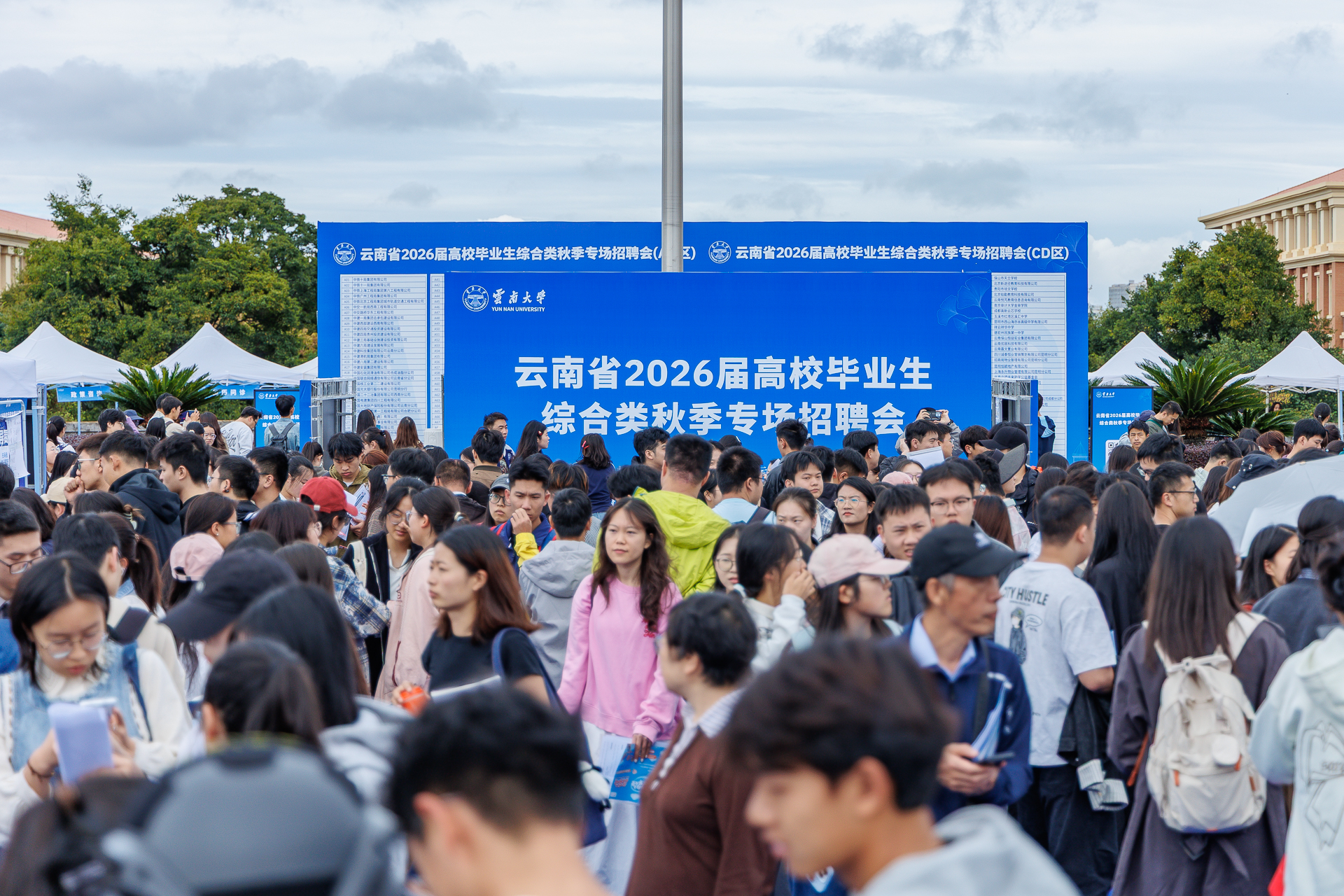 2025年10月17日,由云南省委教育工委、云南省教育厅主办,云南大学、云南省大中专毕业生就业服务中心承办的云南省2026届高校毕业生综合类秋季专场招聘会在呈贡校区文典广场举办,308家优质企事业单位参会,提供12521个就业岗位,吸引了11000余名毕业生到场求职。