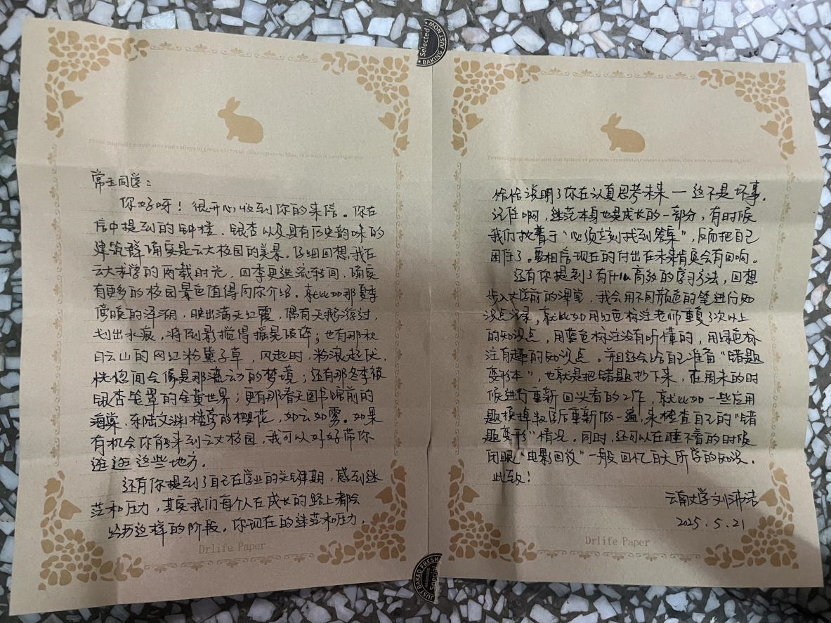 在这场别具特色的公益活动中,六十余名云南大学学子与乡村儿童结成“一对一”书信伙伴。那些字里行间所流露的牵挂与鼓励,宛如潺潺溪流,滋润着双方的心灵,见证着彼此的成长,恰似五月的阳光,在云岭大地与大山深处播下温暖的种子,使其生根发芽。
