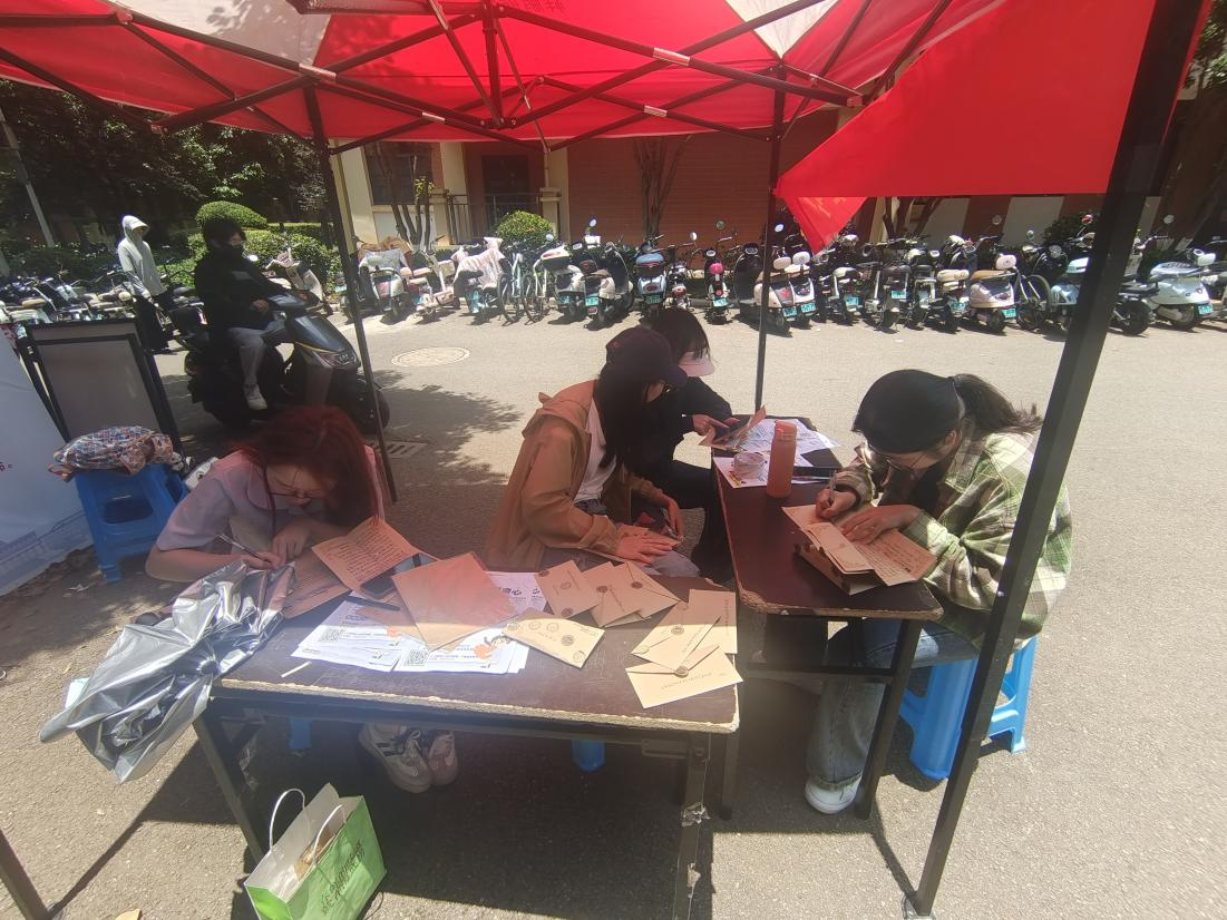 得益于爱心社全体成员前期借助线上微信公众号宣传以及线下设点推广,众多云南大学学子了解到了这一具有意义的活动。2025年5月20日,在云南大学余味堂与知味堂外的广场上,“书信传情,爱暖童心”活动的回信与物资集散中心人潮涌动,云南大学学子纷纷参与该活动。