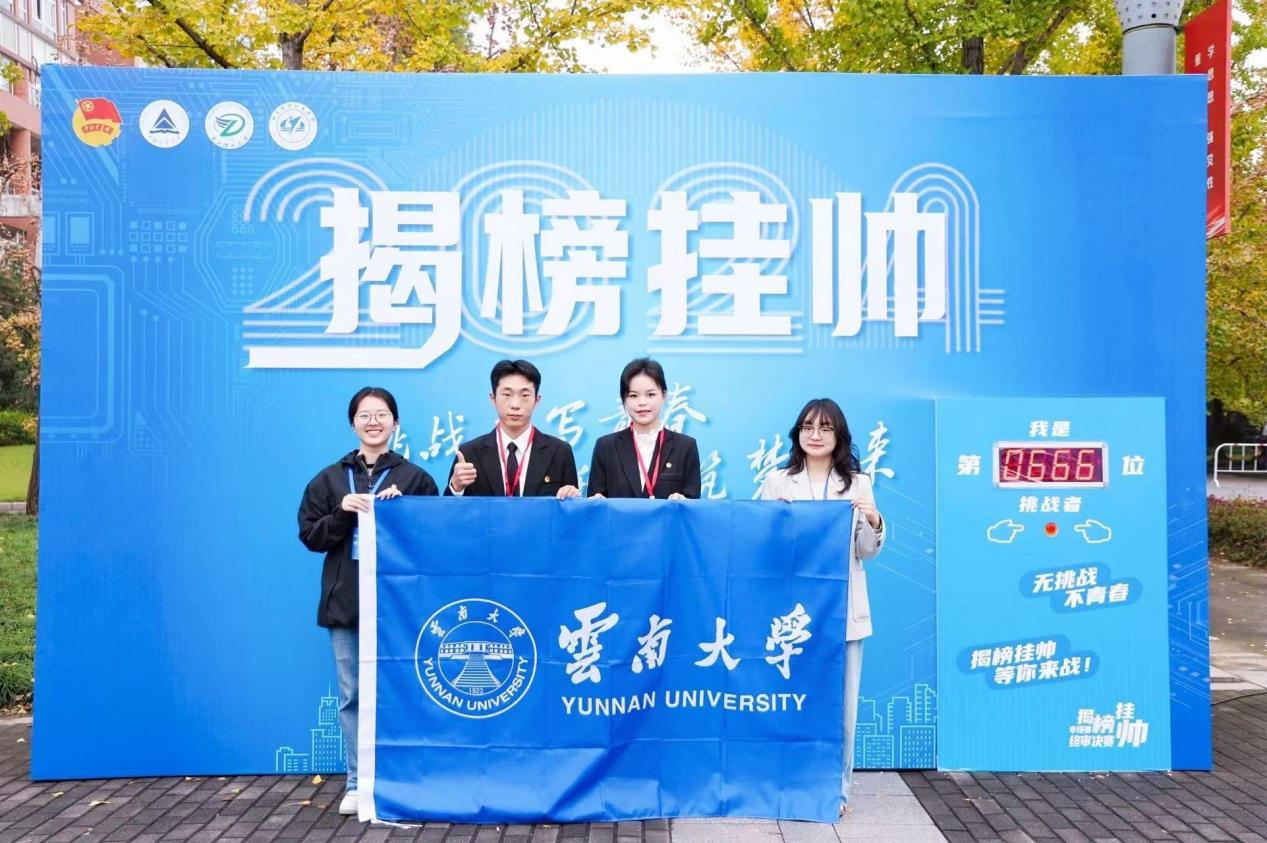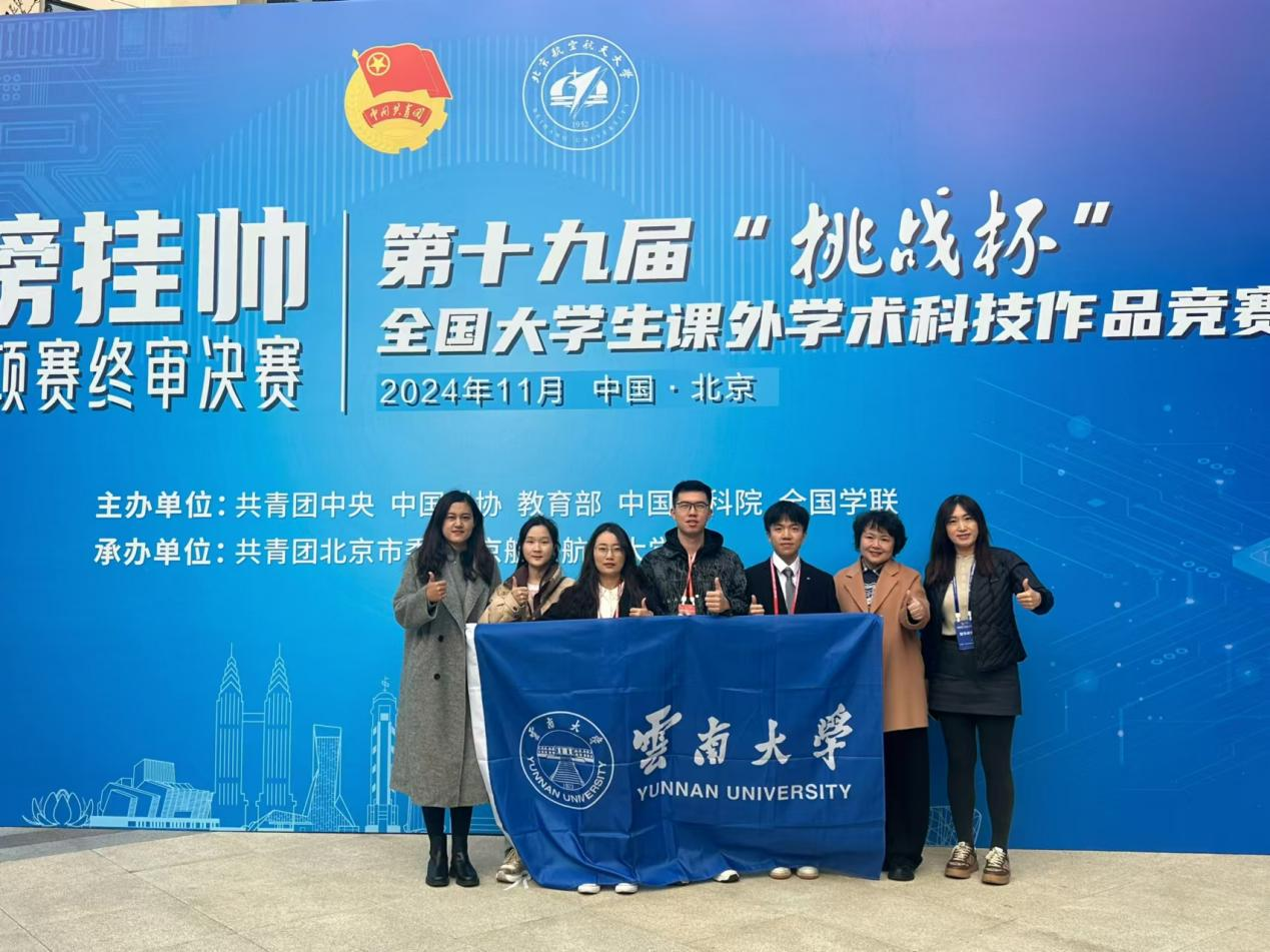2025年11月3日,由共青团中央、中国科协、教育部、中国社会科学院、全国学联和江苏省人民政府共同主办的第十九届“挑战杯”全国大学生课外学术科技作品竞赛在南京大学落下帷幕。云南大学获主赛道一等奖2项、二等奖2项、三等奖2项,“揭榜挂帅”专项赛二等奖2项、三等奖3项,在首届“人工智能+”专项赛获二等项1项、三等奖2项。首次实现了主赛道理工科一等奖的新突破!总分排名位居全省第一,连续四次蝉联“优胜杯”!