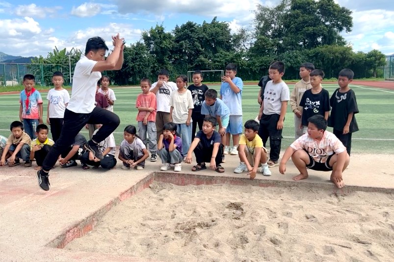 体育学院体育教育专业大四学生金嗣淇,在景洪市景哈乡中学为初三学生教授体育与健康课,他在教学中不断融入当地民族传统体育文化。金嗣淇说,“在热身环节,我加入傣族孔雀舞的基本步伐,让学生在熟悉的律动中活动关节;在体能训练中,我尝试融入哈尼族‘高脚马’”,他在锻炼学生反应力与协调性的同时,让学生感受传统体育的魅力,比如在体育游戏中,金嗣淇将射弩、陀螺等项目引入课堂,在近两个月的体育教学中,孩子们对体育课的热情日渐高涨。