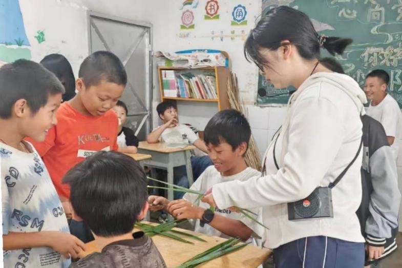 艺术与设计学院环境设计专业大三学生夏紫薇,在鲁甸县桃源中心小学给三至六年级学生教授美术课,进行创意手工教学,她说,“我尝试让他们在粘土课还原校园物件比例,在美术课记录校园最美角落,进而把环境设计专业的色彩、空间知识传授给他们,孩子们活学活用,开始用粘土做收纳盒、用彩绳装饰竹篮。”接下来,她将尝试将石塑粘土融入美术课,培养学生创造力与色彩敏感度,并讲授编竹篮,继续帮助学生在美育中感受家乡非遗之美。