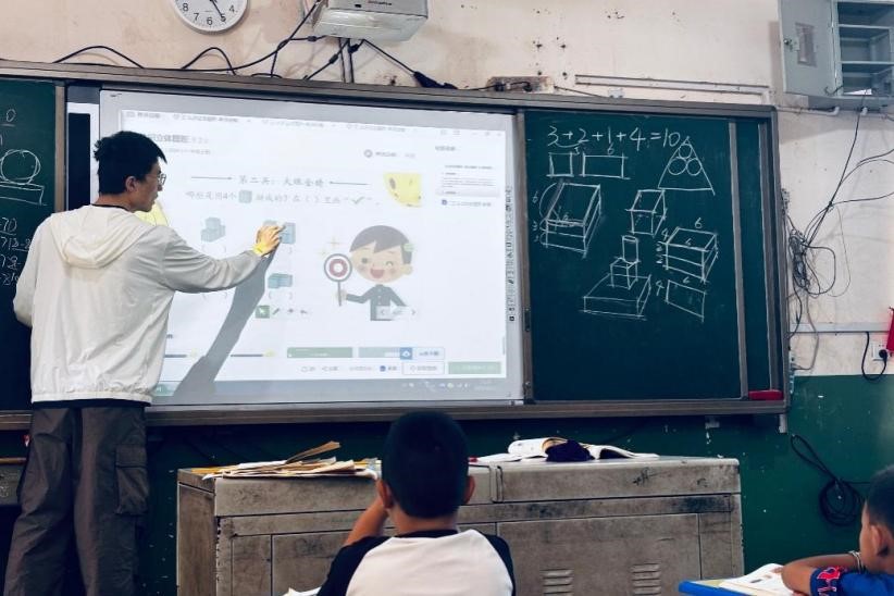 艺术与设计学院环境设计专业研究生二年级的学生姜耀淇,在景洪市大渡岗乡九年一贯制学校大荒坝小学为一、二年级学生教授美术、音乐、数学课。姜耀淇说,“我试着用白族扎染的靛蓝来讲解色彩搭配,用孩子们喜欢的歌曲来串联数学公式,用竹笛的悠扬旋律去浸润他们对未来的憧憬。”支教的这段日子,他逐渐意识到,美育的核心并非教授技巧,而在于唤醒孩子们对美的追求、对家乡对祖国的热爱。