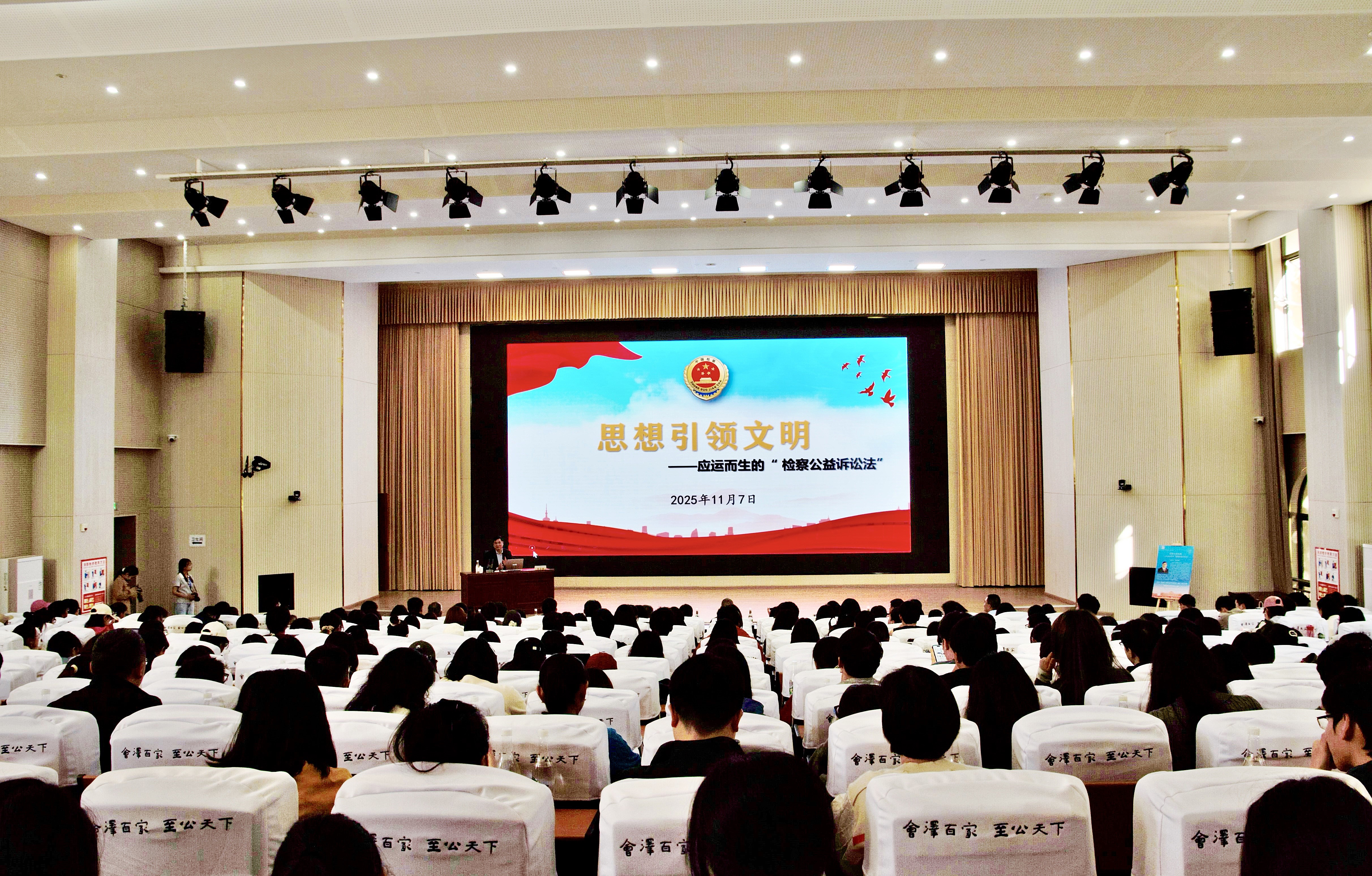 张雪樵以《思想引领文明——应运而生的“检察公益诉讼法”》为题作专题讲座,深度解读了检察公益诉讼制度的理论体系、发展沿革、实践效能等内容,并结合“南四湖公益诉讼专案”的具体案例阐述了检察公益诉讼制度的重要意义与价值。张雪樵指出,检察公益诉讼制度是习近平法治思想在公益保护领域的生动实践和原创性成果,在破解跨区域、跨部门等公益保护难题,助推国家治理体系和治理能力现代化中体现了独特制度价值,为世界法治文明发展提供了“中国方案”。