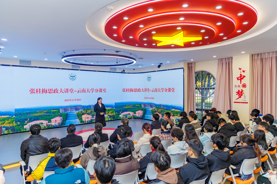 2025年11月28日,“张桂梅思政大讲堂-云南大学分课堂”在马克思主义学院开讲。分课堂以“探寻文明根脉 铸牢中华民族共同体意识”为主题,邀请我校3位不同专业的教师,结合各自研究领域,从理论、历史、实践3个维度对铸牢中华民族共同体意识进行阐述。校党委副书记吴建德参加并作点评发言。