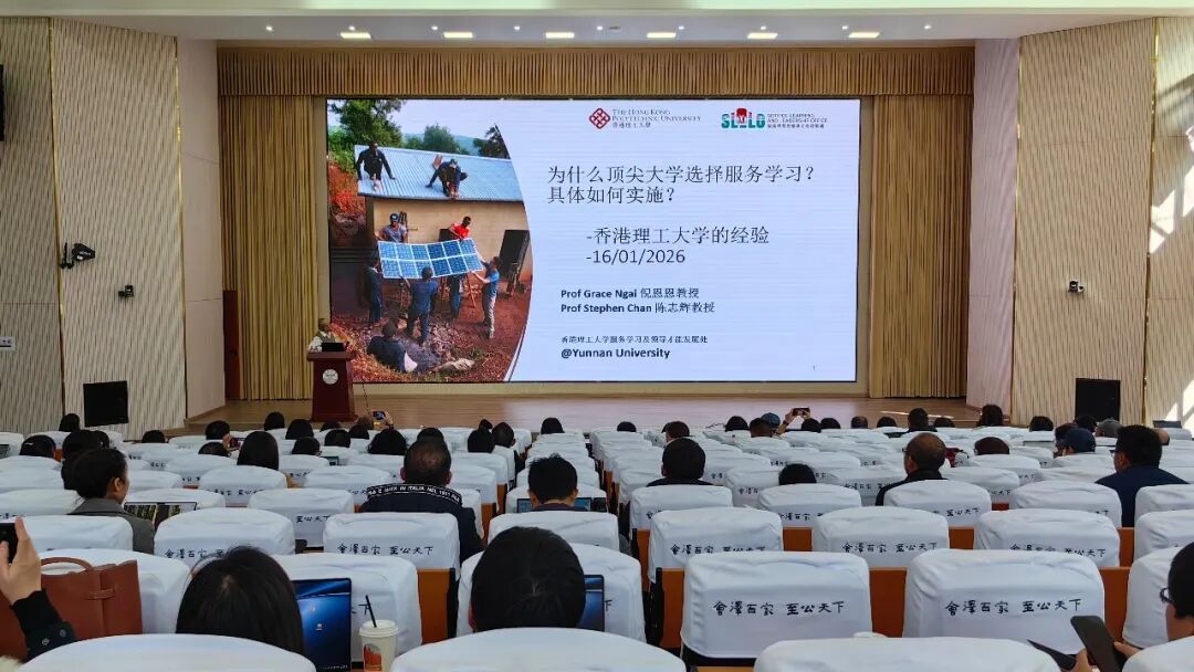 2026年1月16日,“服务学习课程建设——香港理工大学的经验”专题培训讲座在云南大学呈贡校区创客报告厅举办。本次培训由本科生院主办,特邀香港理工大学服务学习及领导才能发展处处长倪恩恩、创始处长陈志辉进行分享。各学院教学副院长、专业负责人等130余人参加培训。