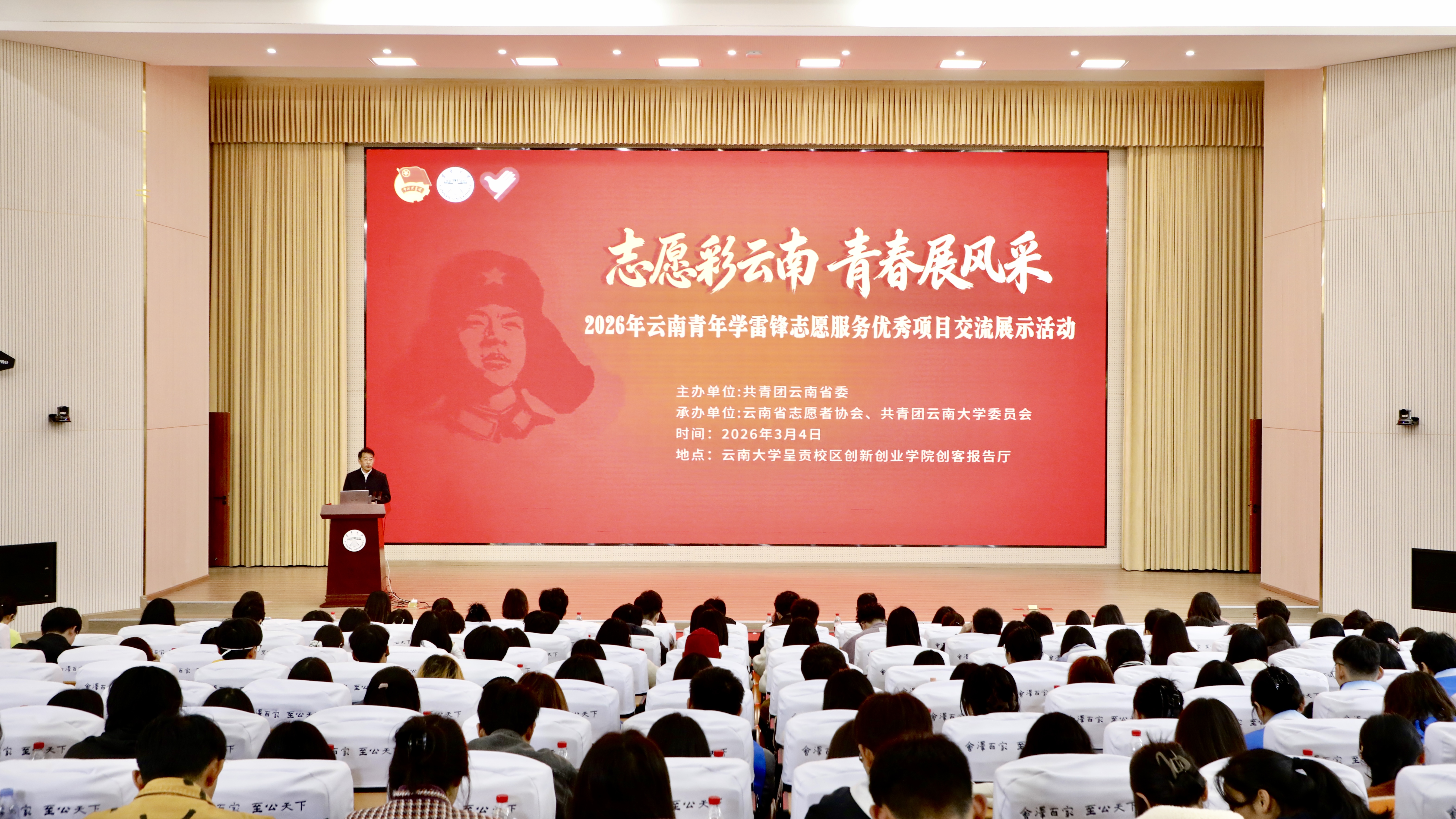 2026年3月4日,在第63个学雷锋纪念日到来之际,由共青团云南省委主办,云南省志愿者协会、共青团云南大学委员会承办的“志愿彩云南·青春展风采”2026年云南青年学雷锋志愿服务优秀项目交流展示活动在云南大学举行。共青团云南省委副书记王珍珍讲话,云南大学党委副书记张玮致辞,全省相关高校团组织负责人、第七届中国青年志愿服务项目大赛国赛获奖项目师生代表及高校志愿者代表等320余人参加活动。