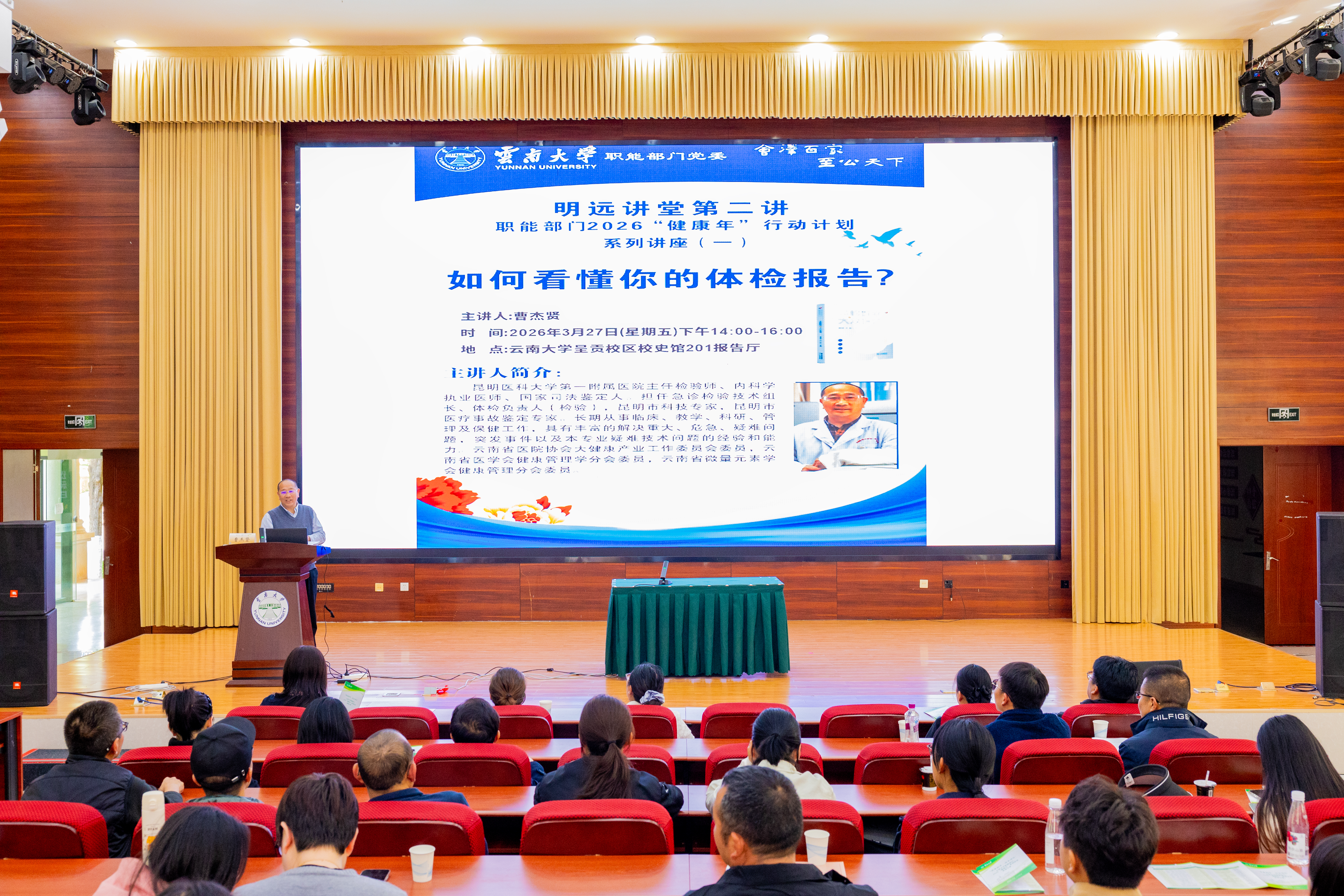 3月27日下午,云南大学职能部门“健康相伴·活力同行”2026“健康年”启动仪式举行。职能部门各工会小组长、会员代表以及昆明医科大学第一附属医院检验科专家团队共同参加活动。