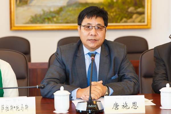 仪式上唐施恩发表讲话。他说,中印是友好邻邦,云南的地理位置就是连接中印两国的陆地桥梁。他表示,中国和印度都是人口大国,也是经济发展速度最快的国家,两国交流除了在国家层面的交流外,通过人文交流以促进民心想通,更能加深两国的友谊,因此两校在法律研究方面的合作更具里程碑意义。他还表示印度驻广州总领馆将一如既往支持云南大学与印度高校的合作。
