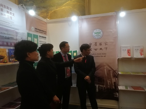 会议期间,杨林专程到云大出版社展位了解参展情况,这是我校出版社第6次应邀参加孔子学院大会教材展,此次展出的亮点是《东南亚语日常词汇图解分类词典》系列,目前共出版了印尼、柬埔寨、马来、越南语、缅甸语、老挝语、缅甸、印度、泰国九个语种词典。杨林书记指示出版社要用好国家文化部对口重点项目——面向东南亚、南亚、西亚文化出版基地这个平台,做好相关系列书籍的出版,向两亚及世界展示我校的研究成果。