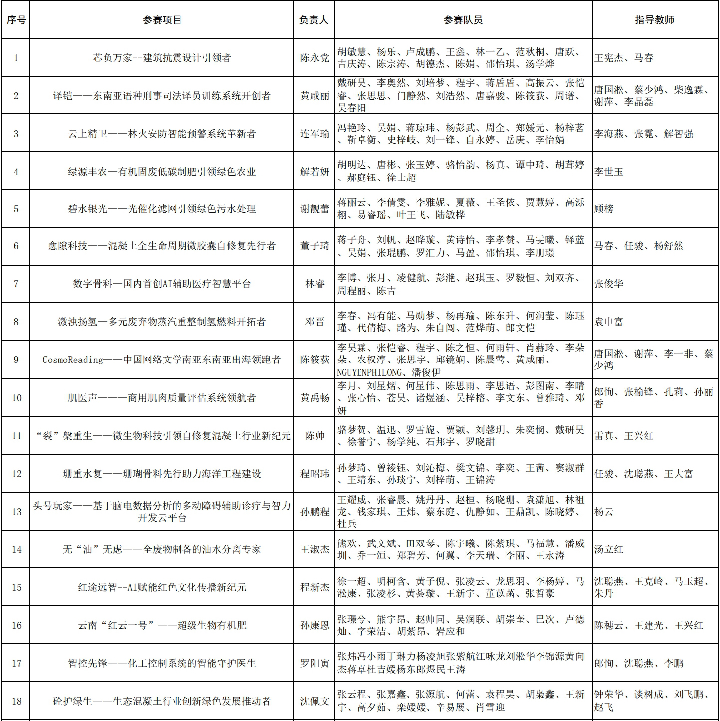 云南大学中国国际大学生创新大赛云南赛区选拔赛冠军争夺赛获季军项目