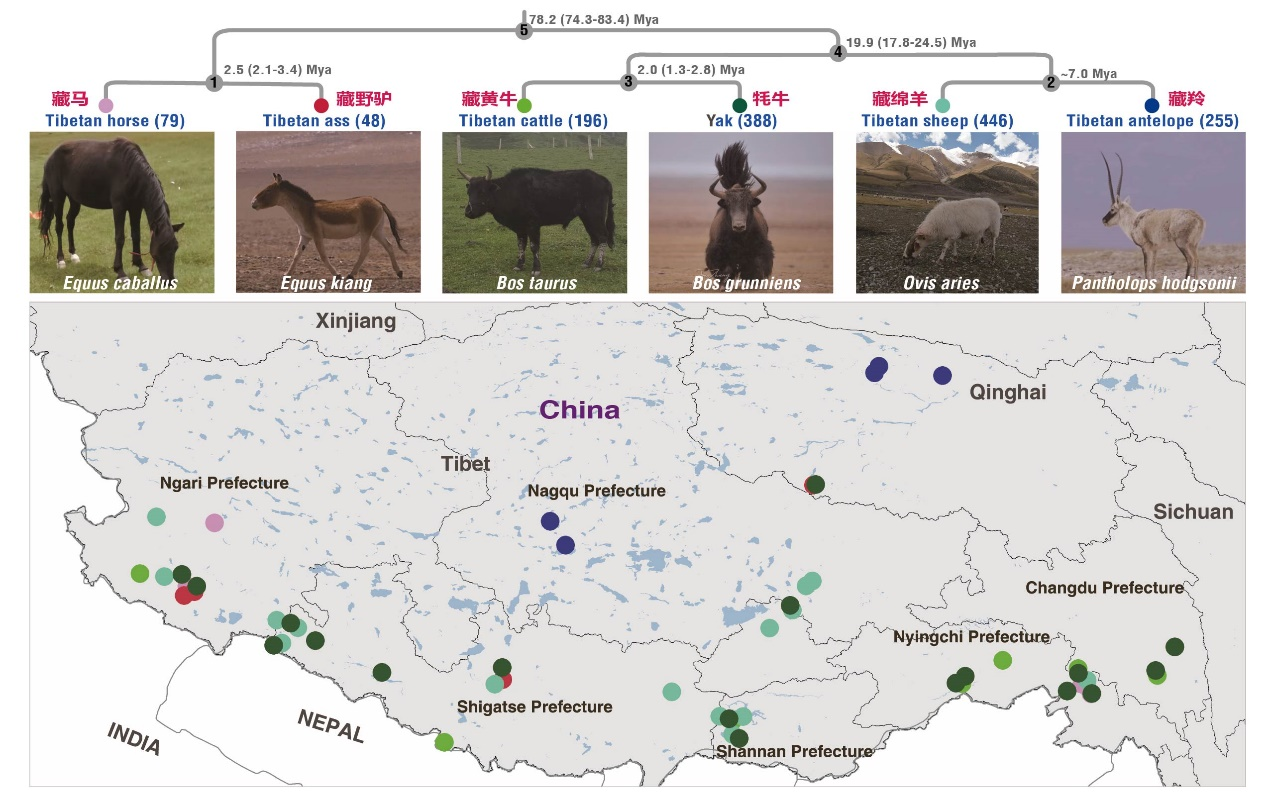 近日,云南大学与华大生命科学研究院联合在微生物领域国际权威期刊《微生物组》(Microbiome)(IF=12.6999)上发表了一项重要研究成果。该研究是我国重大标志性科学工程“第二次青藏高原综合科学考察研究”任务五“生物多样性保护和可持续利用”专题3“高原微生物多样性保护和可持续利用”的代表性科学任务之一,相关成果为今后推动我国青藏高原“动物微生物多样性保护和可持续利用”这一国家战略需求奠定了坚实的基础。研究团队基于大规模采集的高原代表性动物肠道微生物样本,开展了深度宏基因组测序分析,成功构建了迄今为止最完整的、规模最大的高原大型食草动物肠道菌群微生物组数据库,揭示了其中蕴含的丰富且尚未被充分开发的微生物资源。该资源库为开发新型基因编辑工具、抗菌肽等生物技术产品提供了重要支撑。同时,研究团队依托青藏高原这一独特自然实验室,在国际上首次证明了宿主与肠道菌群协同进化的新机制,为该领域的科研探索奠定了重要的理论基础。