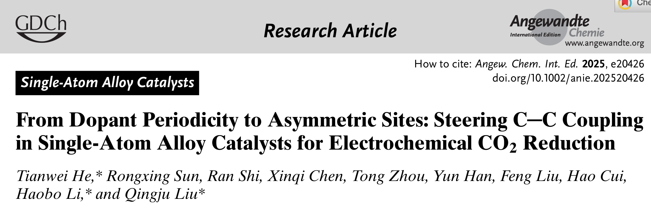 近期,云南大学材料与能源学院、云南省微纳材料与技术重点实验室柳清菊教授团队何天威副教授针对新型单原子合金催化体系开展了研究,相关研究成果发表在Angewandte Chemie (2025, doi.org/10.1002/anie.202520426,IF = 16.9)、ACS Catalysis(2025, 15, 10005-10017, IF = 13.1)期刊上,具体如下: