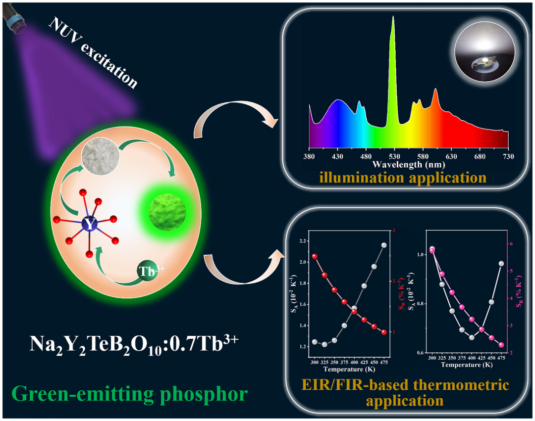 图2.Na2Y2TeB2O10:Tb3+的非接触式温敏应用技术
