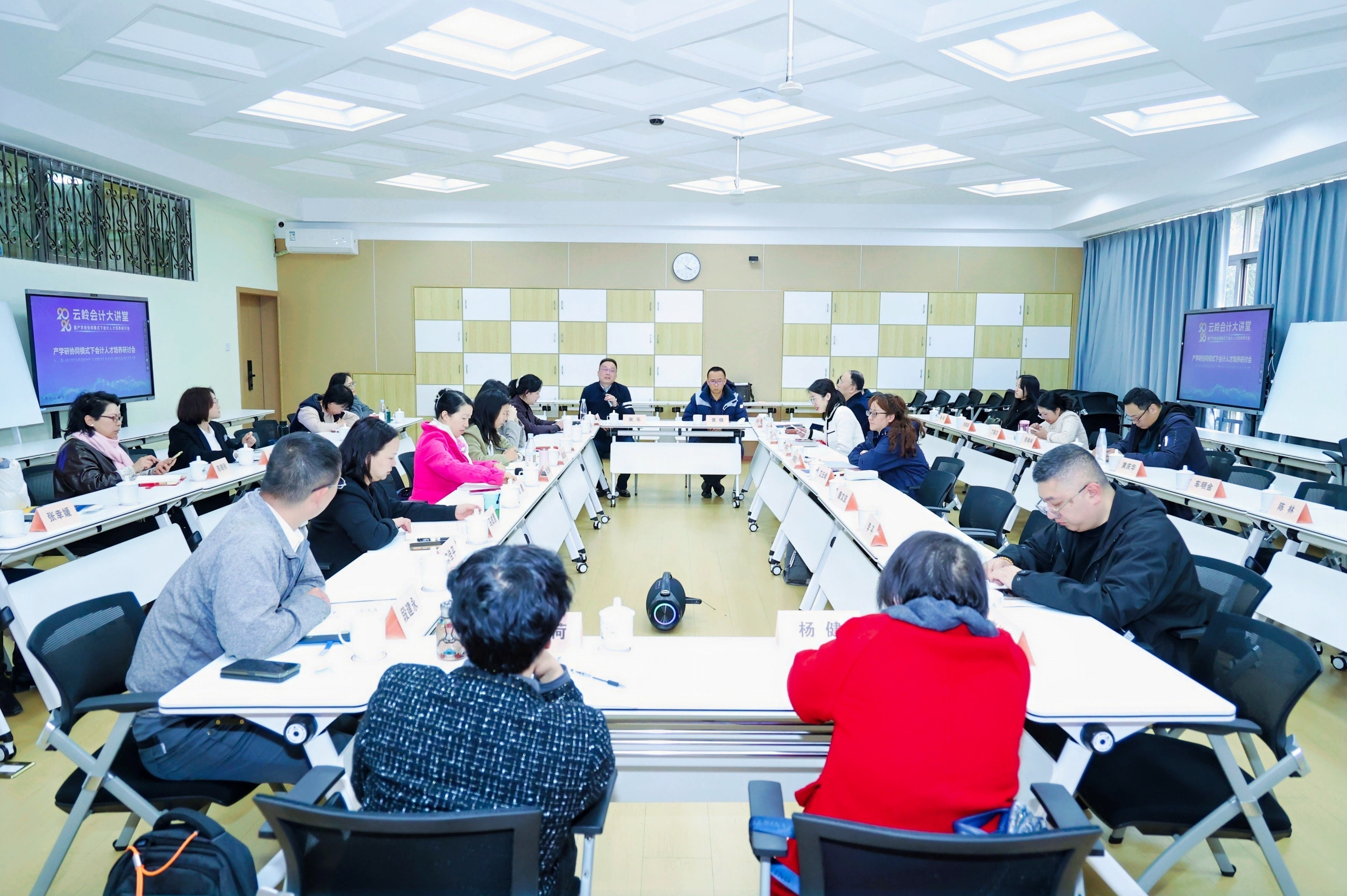 在研讨座谈环节,来自省内部分企事业单位财务部门负责人、省内外高校会计学院负责人、会计学科教学科研骨干及我省全国会计领军人才,围绕“产学研协同模式下会计人才培养”主题展开深度交流探讨,聚焦数智化时代会计人才培养的痛点难点,借鉴先进育人模式经验,共同谋划新时代会计人才培养的创新路径与实践方法,为服务云南“十五五”规划实施、培育储备高素质复合型会计人才贡献智慧力量。