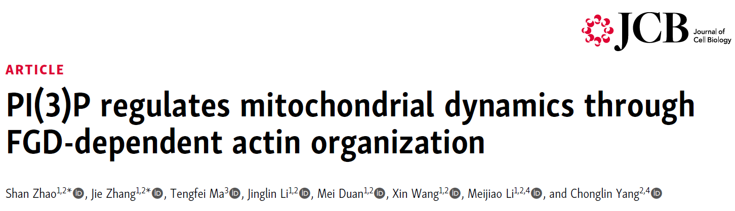 2026年4月7日,云南大学生命科学学院杨崇林研究团队在国际知名学术期刊《Journal of Cell Biology》上发表题为“PI(3)P regulates mitochondrial dynamics through FGD-dependent actin organization”的研究论文。