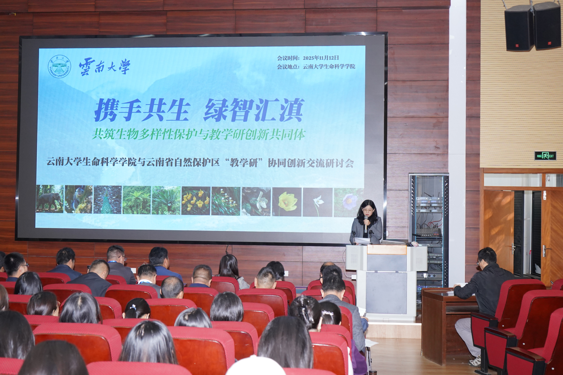 2025年11月12日,云南大学生命科学学院与云南省内多个自然保护区管护单位共同举行了“教学研”协同创新交流研讨会。本次研讨会以“携手共生,绿智汇滇:共筑生物多样性保护与教学研创新共同体”为主题,旨在积极对接国家生态文明建设战略,服务云南省“生态文明建设排头兵”发展定位,深入落实高校服务地方经济社会发展使命,强化“教学-科研-实践”协同育人机制。