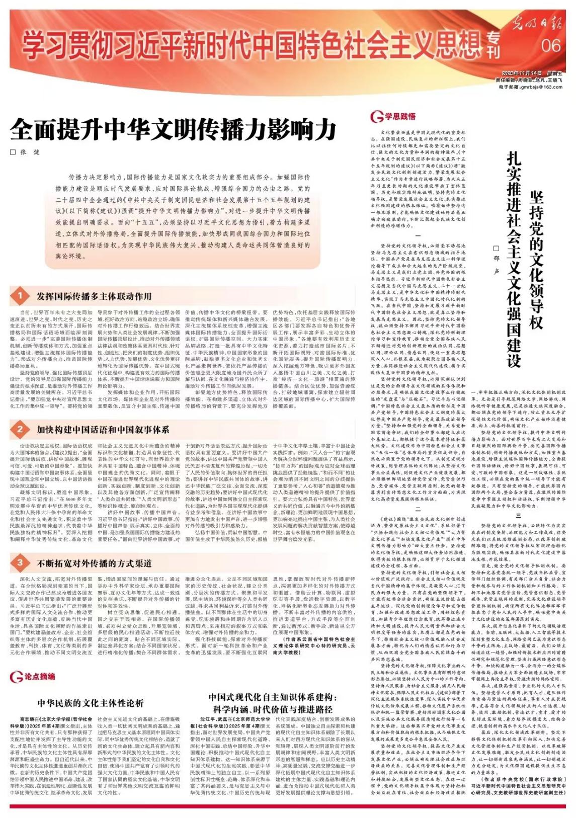 近日,《光明日报·学习贯彻习近平新时代中国特色社会主义思想专刊》刊发云南大学《思想战线》编辑部张健教授文章《全面提升中华文明传播力影响力》,该文系学习阐释党的二十届四中全会精神专题文章。