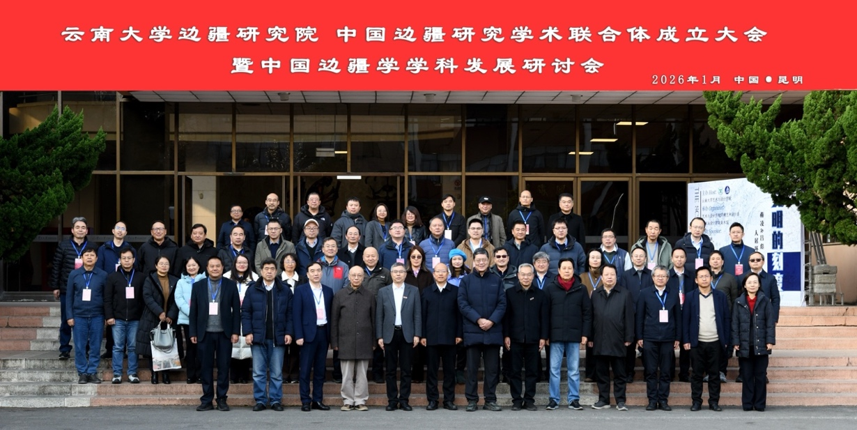 2026年1月10日,中国边疆研究学术联合体启动仪式暨中国边疆学学科发展研讨会在云南大学举行。来自中国社会科学院、复旦大学、中央民族大学、四川大学、南京大学、华东师范大学、山东大学、吉林大学、兰州大学、陕西师范大学、延边大学、四川师范大学、浙江师范大学、广西师范大学、云南师范大学、云南民族大学和云南省社会科学院等20余所高校和科研机构的专家学者齐聚一堂,共同见证中国边疆研究学术联合体成立,并围绕中国边疆学自主知识体系建构、边疆治理现代化等重大议题展开深入研讨。