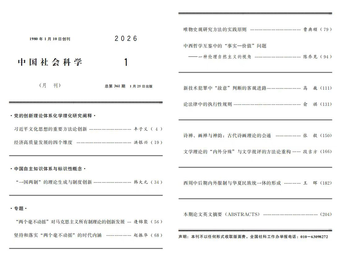 近日,云南大学法学院高巍研究员在《中国社会科学》2026年第1期发表高水平学术论文《新技术犯罪中“故意”判断的客观进路》。