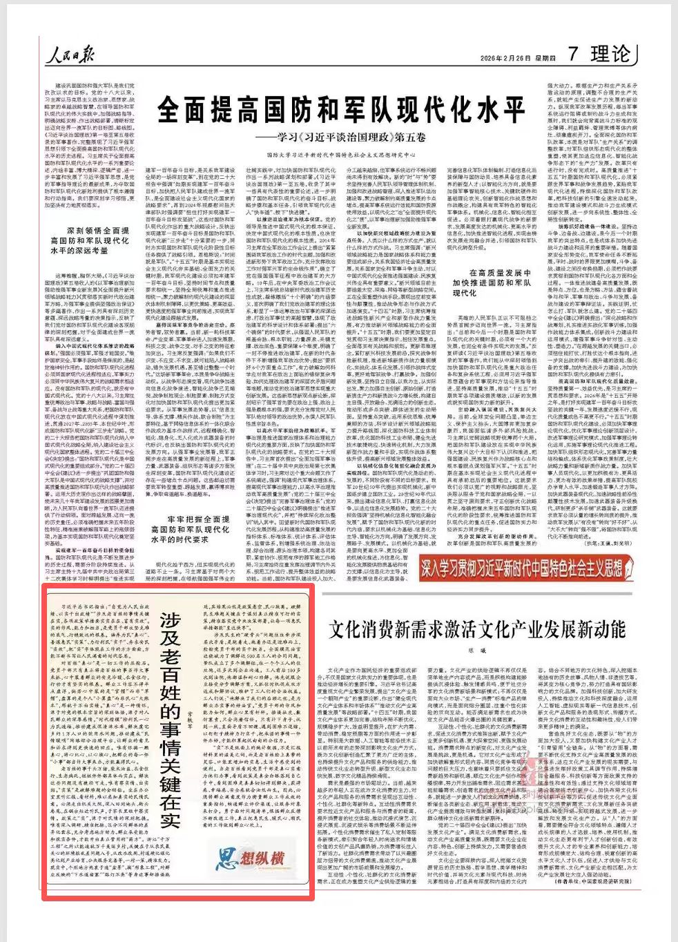 2026年2月26日,《人民日报》理论版刊发云南大学政府管理学院政治学系常轶军教授文章《涉及老百姓的事情关键在实》。