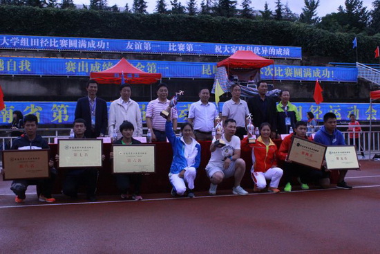 6月13日,云南省第十五届运动会田径比赛(大学组)闭幕式在昆明学院举行。云南省教育厅体卫艺处处长徐忠祥,云南省学生体育协会会长姜征明,副会长张国华,云南大学体育学院院长、云南省学生体育协会田径专业委员会主任李国忠以及参赛队各学院领导,全体教练员和运动员参加了闭幕式。