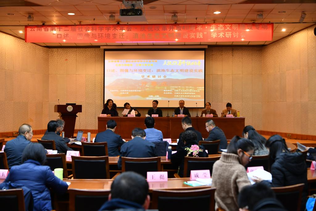 2018年12月28日,云南省第十二届社会科学学术年会暨庆祝改革开放40周年生态文明建设专场“口述、图像环境变迁:滇池生态文明建设”学术研讨会在云南大学举行。会议由云南省委宣传部、云南省社科界联合会、云南大学主办,云南大学西南环境史研究所承办,云南生态文明建设智库、云南大学生态学与环境学院合办。来自北京大学、中国人民大学、复旦大学、云南大学、云南省委党校、云南省社会科学院、昆明市滇池管理局、生态环境部华南环境科学研究所、云南省环境科学研究院、昆明市委党校等30多家高校和科研院所共60余位专家学者参加此次会议。