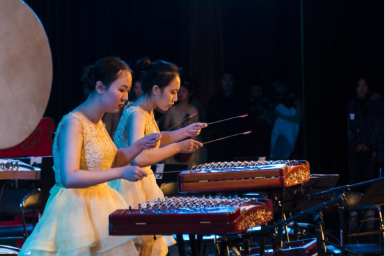 音乐会在一首欢快的《步步高》中拉开序幕,乐曲优美流畅,热情洋溢,营造了新年将至的欢乐气氛。曲调婉转、意境深远的《春江花月夜》,把春江月下的一点寒和夜晚的静谧融合在一起,乐曲跌宕起伏而又丝丝入扣,形象地向现场观众展现出江南水乡的风姿异态。翠荫石牌立桥旁,湖镜涟漪泛银光。春风荡柳垂依依,晓以春色人间藏。一首《翠湖春晓》让人深深体会到民乐的悠扬美妙,配以学生艺术团曲艺队同学壮志豪情的朗诵,让观众仿佛漫步翠湖畔,聆听改革开放40年奋斗华章,倾听云大学子践行“自尊 致知 正义 力行”的青春宣言。作为一首以管弦乐重新编曲的经典作品,《彩云追月》曲调轻盈悠扬、撩人心弦、意趣盎然。红酥手、黄滕酒,满城春色宫墙柳。东风恶、欢情薄,一怀愁绪,几年离索。世情薄、人情恶,雨送黄昏花易落。晓风干、泪痕残,欲笺心事,独倚斜栏。这是一段吟唱了千百年的情缘,音乐会上半场以一首幽怨低婉又荡气回肠的《陆游与唐琬》谢幕,古筝协奏配以合唱队同学吟唱的《钗头凤》,让人被这段凄美的爱情故事深深感动,潸然泪下。