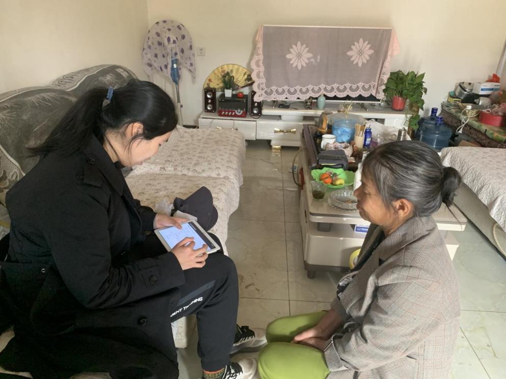 彝族奶奶在访问中拿出户口本等材料确保调查信息准确无误
