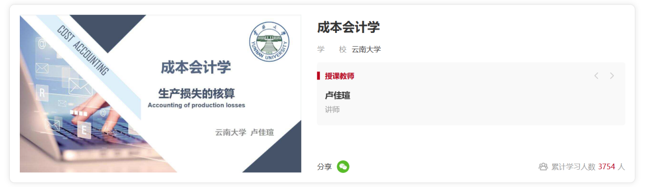 在教育部高等教育司发布的《关于第三批国家级一流本科课程认定结果的公示》中,卢佳瑄老师为课程负责人的《成本会计学》课程被认定为国家级线上一流课程。