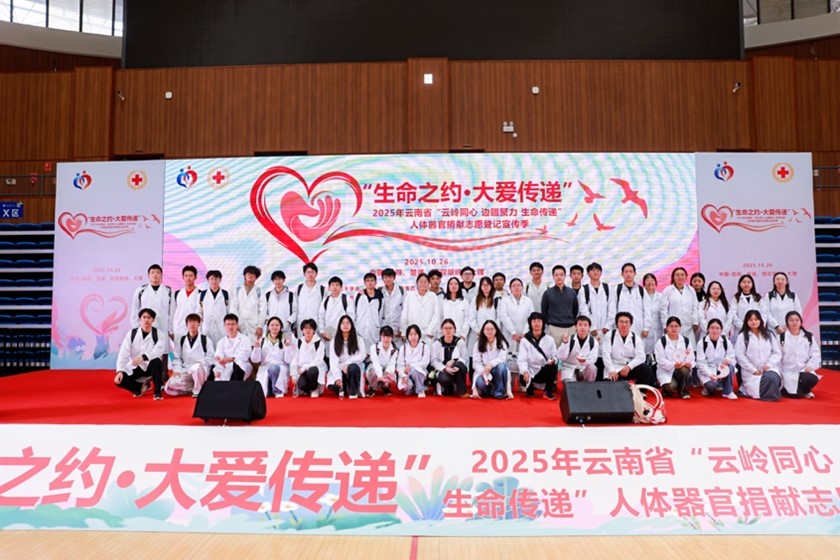10月26日,医学院人体器官捐献志愿服务队受邀参与由云南省红十字会、云南省卫生健康委联合主办的“云岭同心·边疆聚力·生命传递”全省人体器官捐献志愿登记宣传季主场活动,通过现场观看专题宣传片、跟读捐献倡议,同步见证“生命之树”点亮仪式,深刻感受器官捐献“延续生命、传递大爱”的崇高意义。